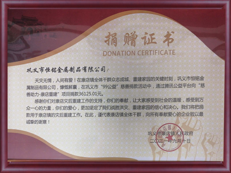 鞏義市恒銘金屬制品有限公司位于河南省鞏義市先進制造業(yè)開發(fā)區(qū)(康店園區(qū)),公司創(chuàng)建于2005年,前身是鞏義市康店恒銘金屬制品廠,并于2009年3月注冊了‘鞏義市恒銘金屬制品有限公司’,注冊資金600萬元,占地面積1.5萬平方米,隸屬金屬制品行業(yè)。公司擁有自己的研發(fā)隊伍,配備有精確的檢測設(shè)備。......
